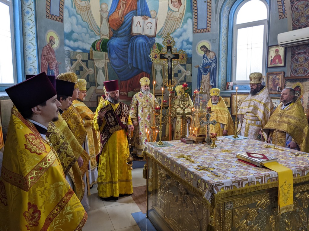 Високопреосвященному владиці на Літургії співслужило духовенство єпархії та гості у священному сані.