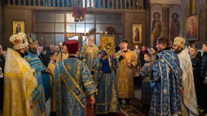 Високопреосвященному владиці співслужили намісник монастиря архімандрит Паїсій разом з духовенством обителі та єпархії.